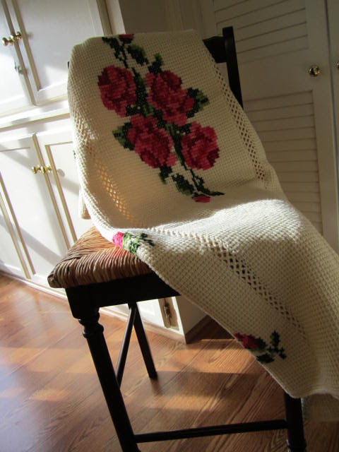 So the question is...how can I get some honeysuckle in my house? I have an afghan that my grandmother made me as a gift for my high school graduation. When I was younger I don't think I entirely realized what a lovely and precious gift it was. Here it is...